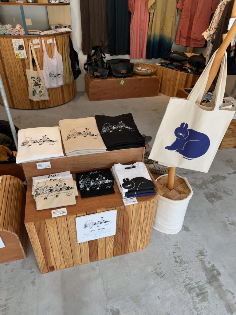 中に入ってみると、イリオモテヤマネコのイラストが描かれたTシャツやトートバッグが売っているお土産コーナーになっていました。